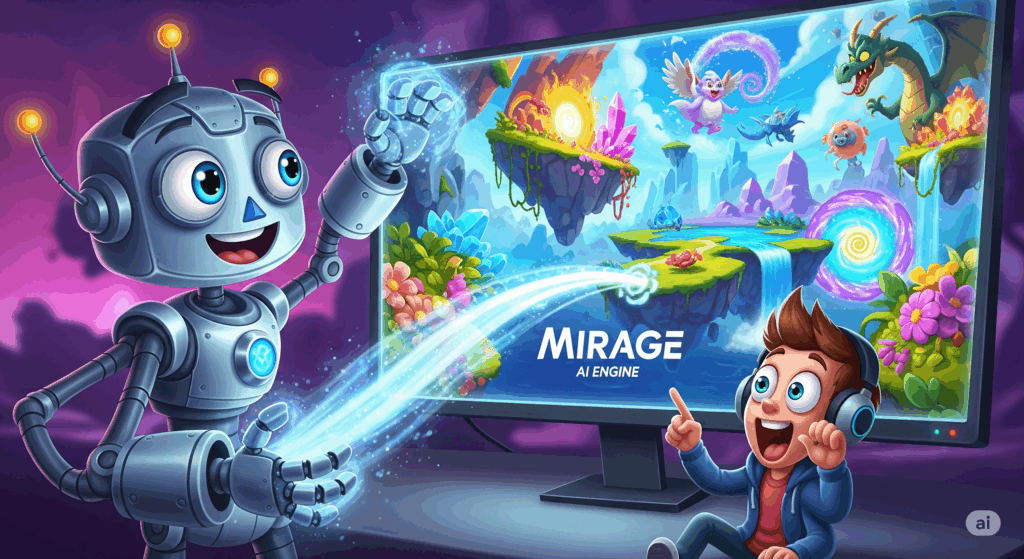 AIワールドモデルを活用した革新的なゲームエンジンMirage。プレイヤーがテキストや入力デバイスを使ってリアルタイムでゲーム世界を生成・編集できる新しいインタラクティブ体験を実現します。 -